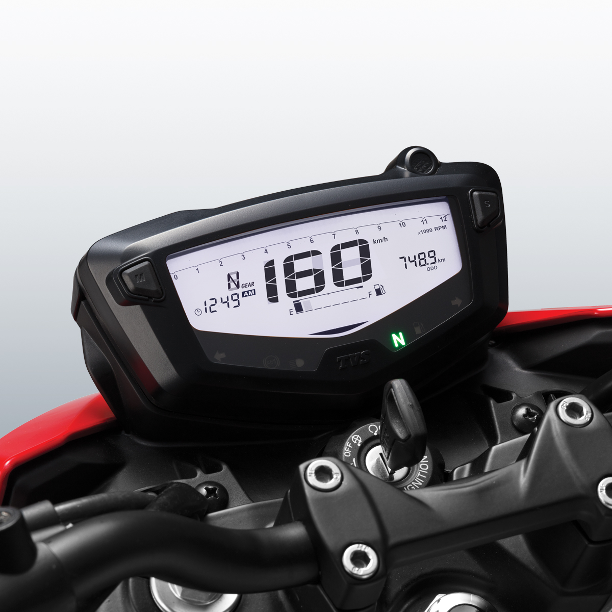 Tablero digital LCD de la RTR 160: información clara, diseño deportivo y lectura intuitiva en cada viaje.