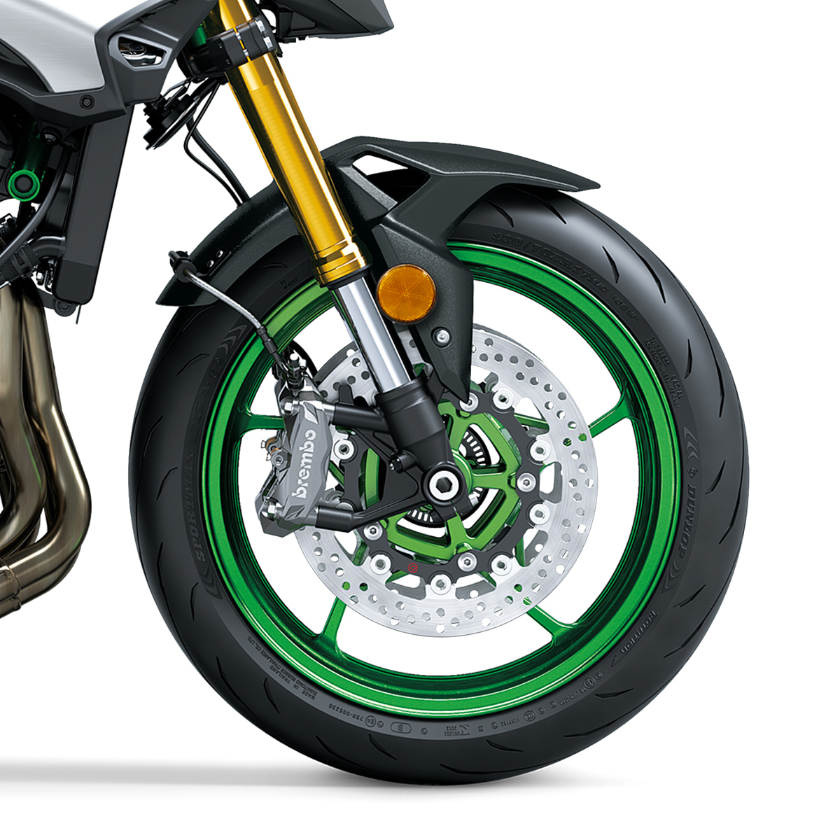 ABS con IMU y Kawasaki Cornering Management Function (KCMF) para mayor seguridad en curvas.